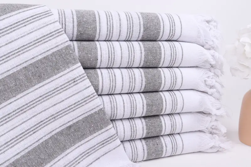 Turkish Bath Towel Khaki Green Cotton Striped, 32x67 Inches