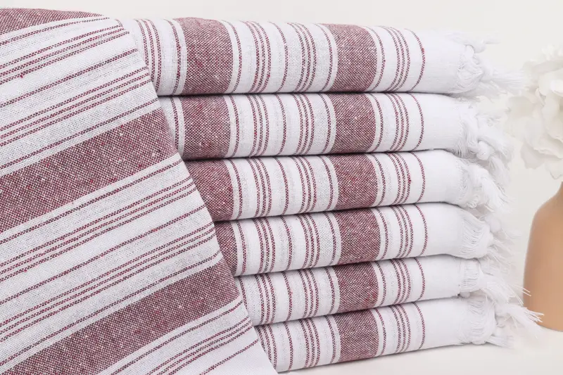 Wedding Gift Bath Towel, 32x67 Inches, Burgundy Cotton, Striped