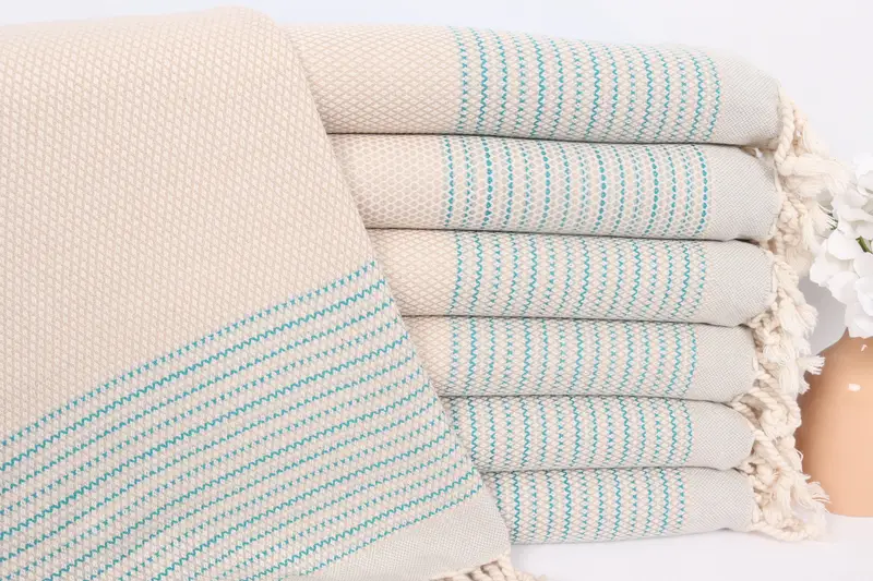 Wedding Gift Striped Dish Towel Beige-Blue Cotton, 20x36 Inches