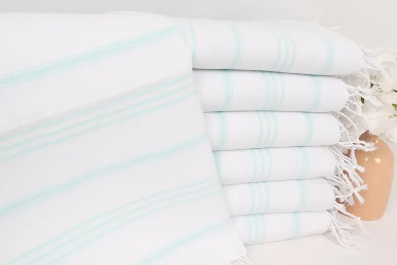 Striped Turkish Cotton Hand Towel Mint, 24x40 Inches