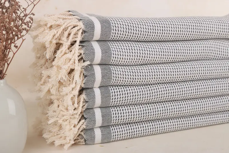 Monogram Beach Towel Turkish Cotton Navy Geometric, 36x71 Inches