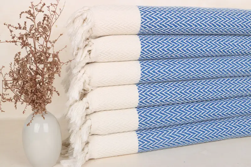 Sax Blue Cotton Hand Towel, Bath Towel, Beige, 18x34 Inches