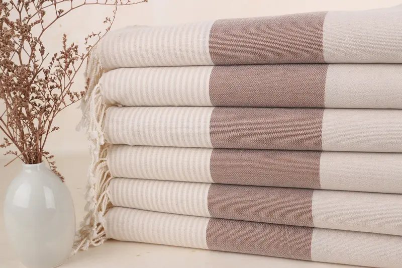 Personalized Beach Towel Brown-Beige Stripes, 40x67 Inches Organic Cotton