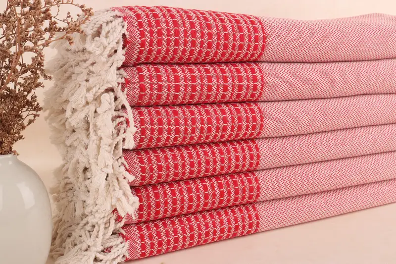 Personalized Turkish Beach Towel Red Stripes, 36x69 Inches