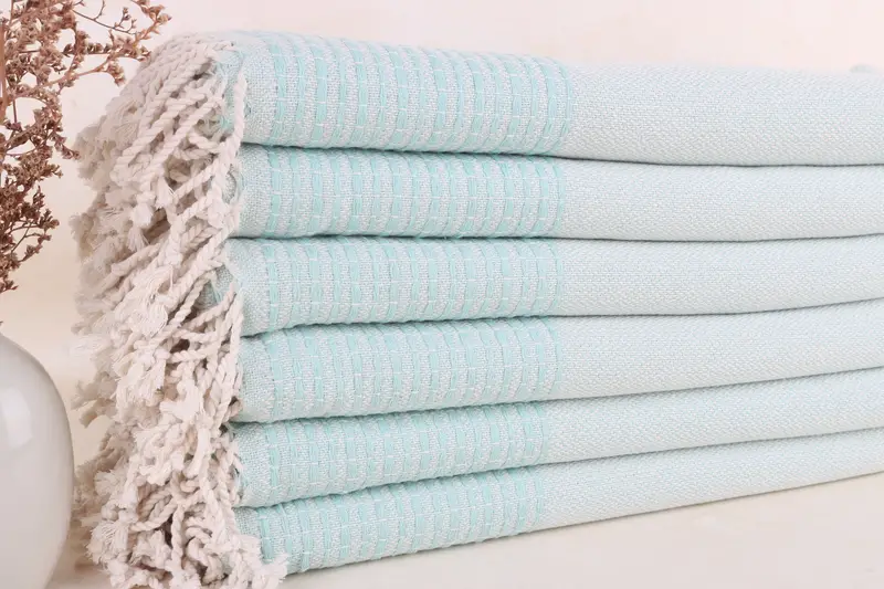 Turkish Beach Towel Personalized Mint Beige Stripes, 100% Organic Cotton, 36x69 Inches