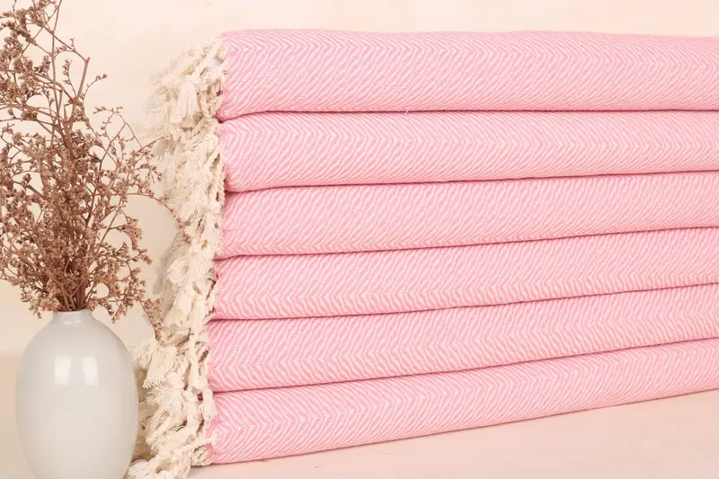Personalized Turkish Towel Bath Towel Pink Beige, 20x40 Inches