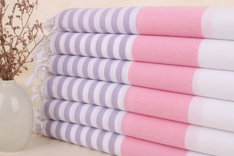 Custom Turkish Towel Pink-Lilac Striped, Beige, 100x180 cm