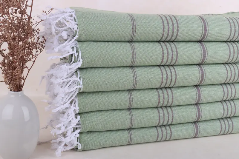 Monogrammed Beach Towel Khaki Green-Brown Stripes, 40x71 Inches