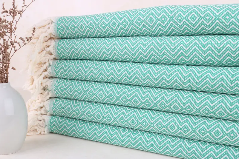 Custom Beach Towel Green Diamond, Organic Turkish Cotton, 38x71 Inches