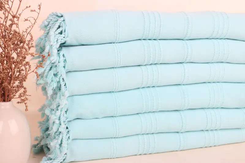 Bridal Shower Gift Organic Cotton Striped Towel, Turquoise Beige, 36x67 Inches