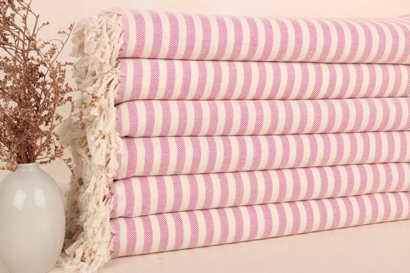 Striped Hand Towel Monogrammed Turkish Cotton Beige, 24x40 Inches