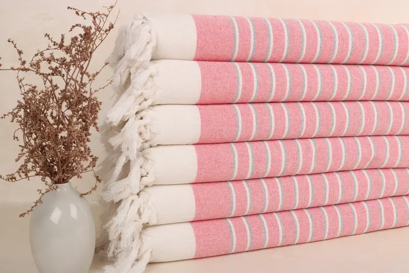 Hanging Kitchen Hand Towel Red Striped Terry, 18x36 Inches