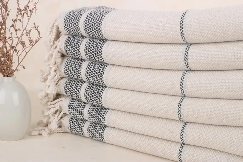 Custom Turkish Beach Towel, Black-Light Gray, Striped, 36x71 Inches