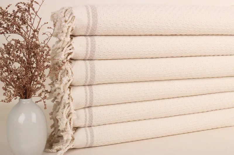 Striped Hand Towel Personalized Dish Towel Monogram Kitchen Towel Light Beige Cotton, 18x38 Inches