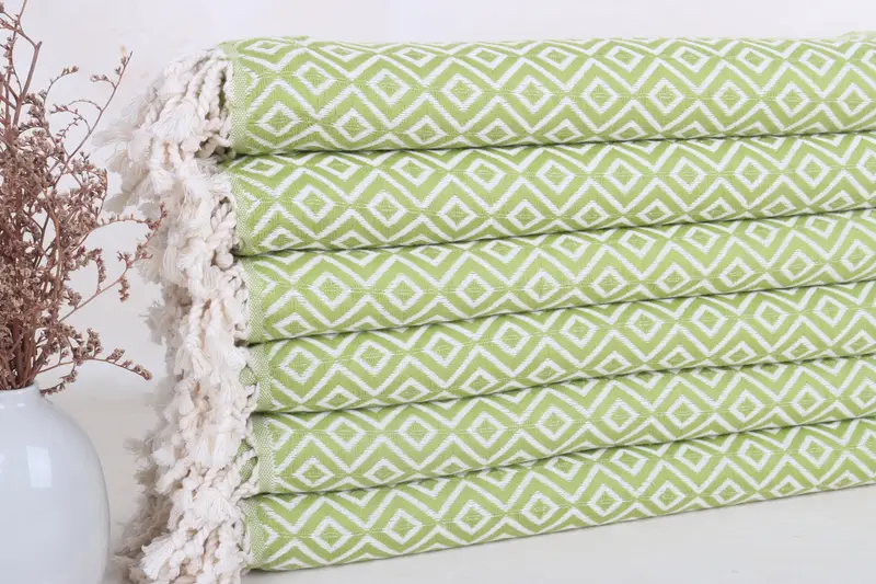 Personalized Gift Light Green Diamond Towel, Turkish Bath Towel, 40x71 Inches