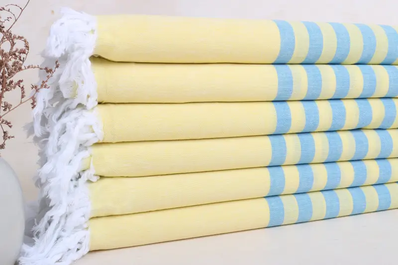 Striped Towel Monogrammed Organic Cotton Blue-Yellow, 36x71 Inches