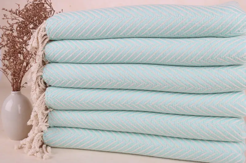 Turkish Beach Towel Personalized Mint Beige Chevron, 40x69 Inches