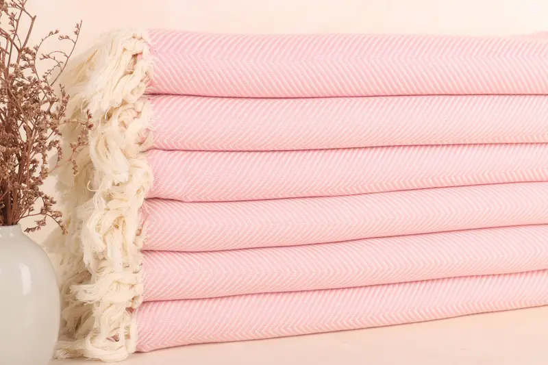 Pink Cotton Towel, Herringbone Pattern, Organic Cotton, 40x71 Inches