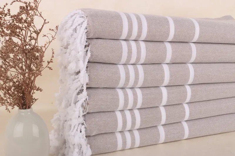 Personalized Beach Towel Brown Stripes, Beige, Organic Cotton, 40x71 Inches