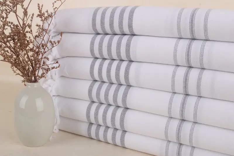 Turkish Towel Striped Gray Cotton Bath Towel, Organic, 40x71 Inches