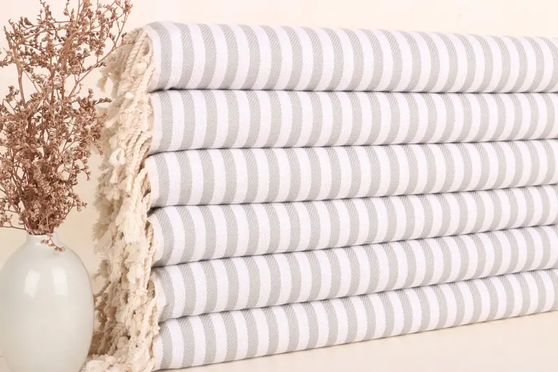 Striped Turkish Hand Towel Light Gray Cotton, 18x40 Inches