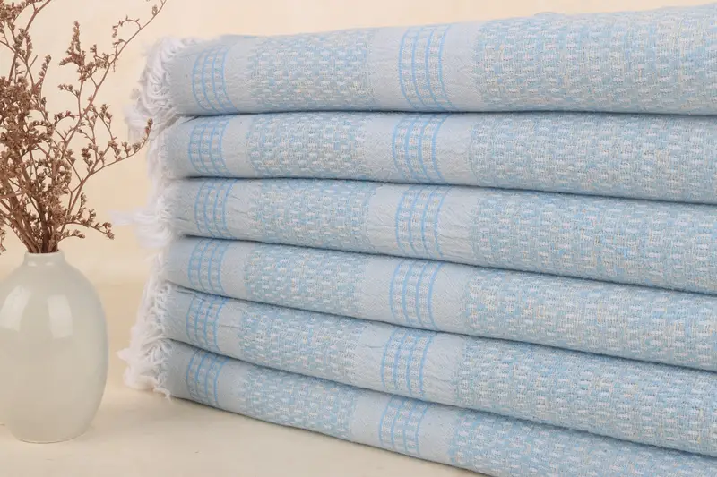 Personalized Linen Towel Baby Blue Striped Bath Towel, 36x71 Inches