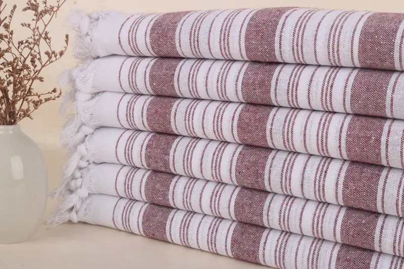 Burgundy Cotton Bath Towel Striped Peshtemal, 32x67 Inches