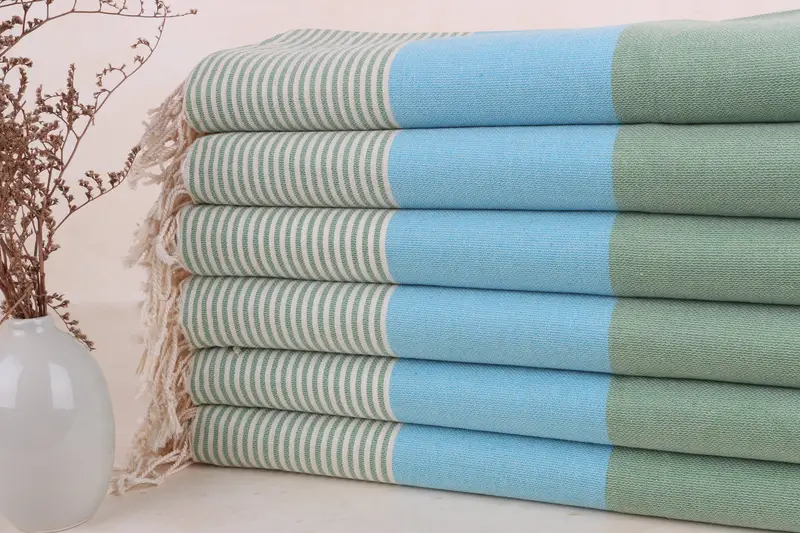 Striped Towel Turquoise-Dark Green Organic Cotton Bath Towel, 40x67 Inches