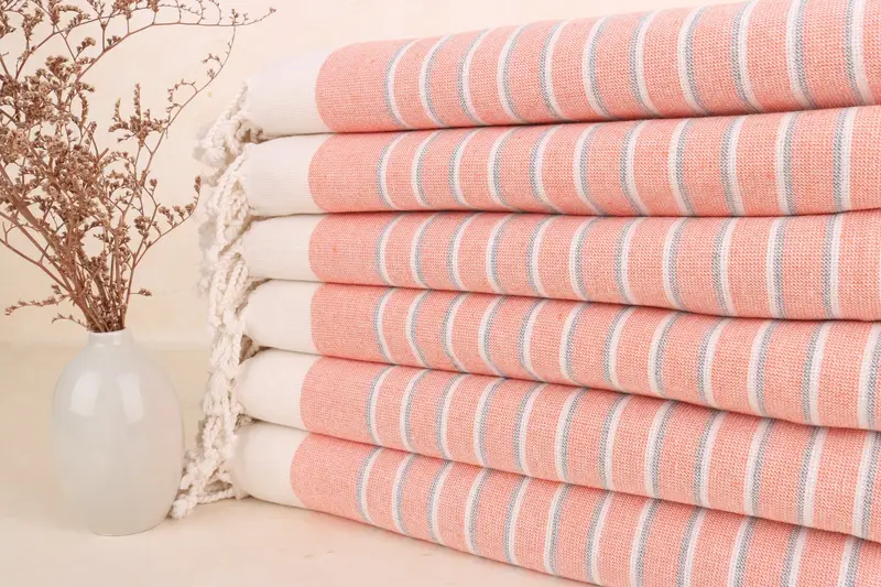 Bridesmaid Gift Embroidered Terry Bath Towel Orange Striped, 39x65 Inches