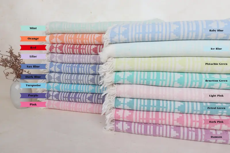 Personalized Turkish Beach Towel Organic Cotton Kilim Design, 40x70 Inches