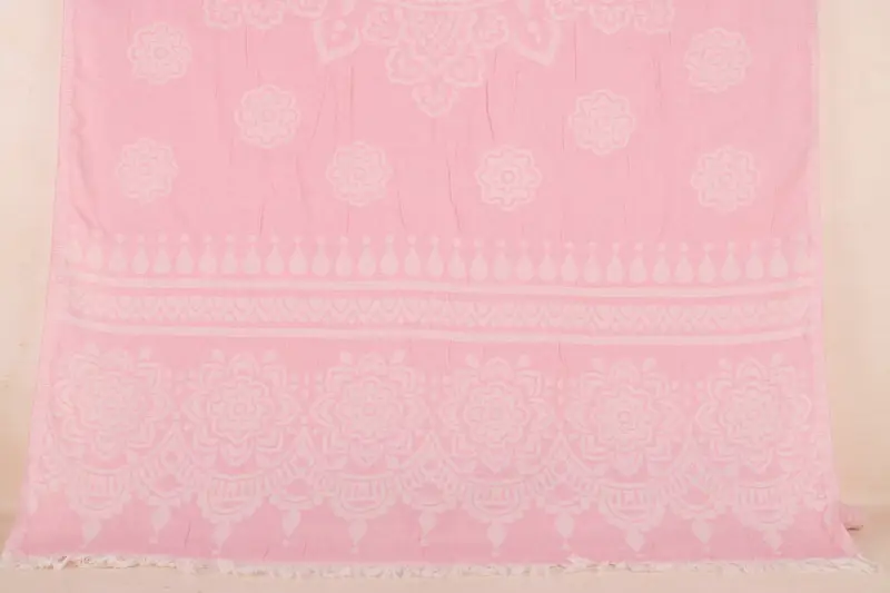 Floral Patterned Organic Cotton Towel, Handmade, 36x73 Inches