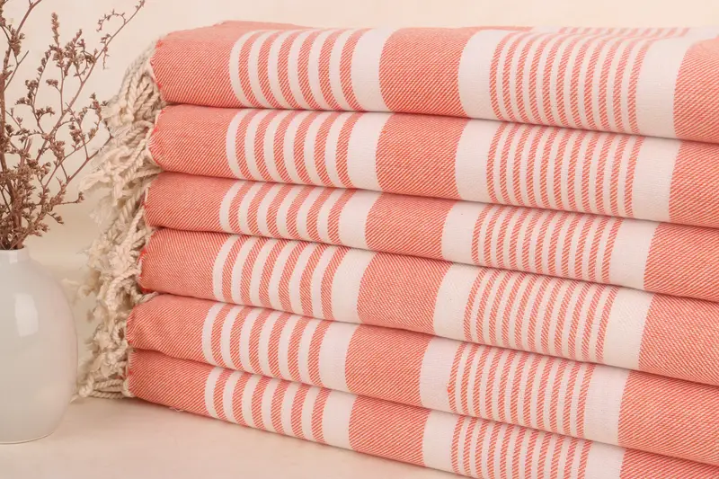 Turkish Beach Towel Monogram Striped Beige, 38x67 Inches