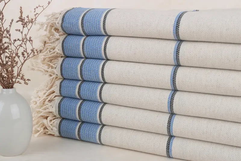 Turkish Towels Beach, 36x71 Inches Organic Cotton, Blue Stripes, Beige