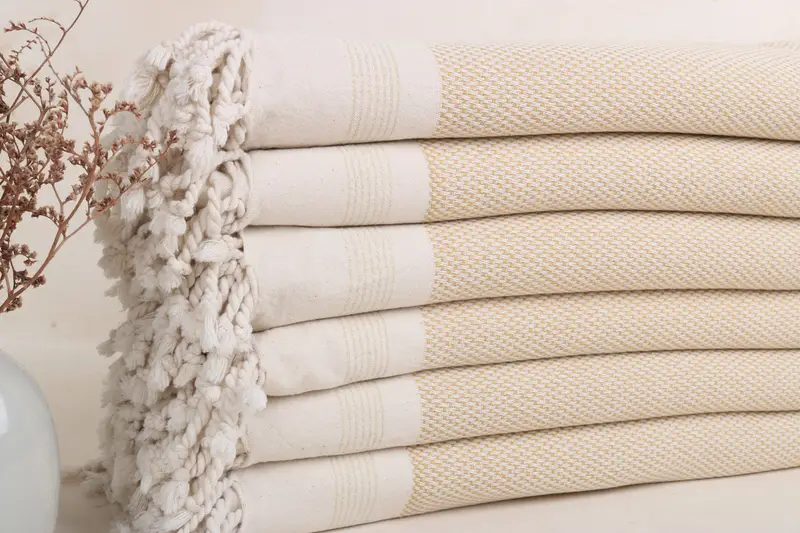 Striped Towel Organic Cotton Bath Towel Mustard Beige, 40x67 Inches