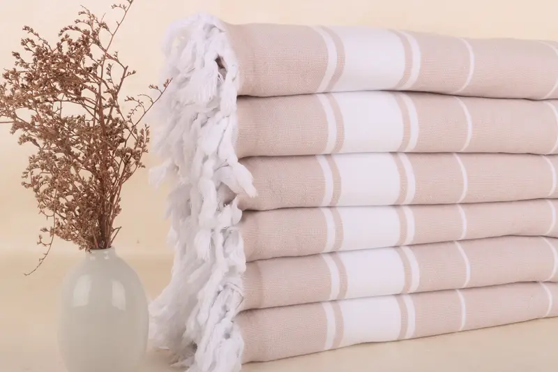 Custom Beach Towel, Turkish Cotton Beige Striped Terry, 36x63 Inches