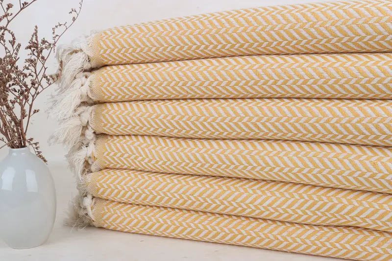 Turkish Towel Beach Mustard Cotton Chevron, 40x71 Inches