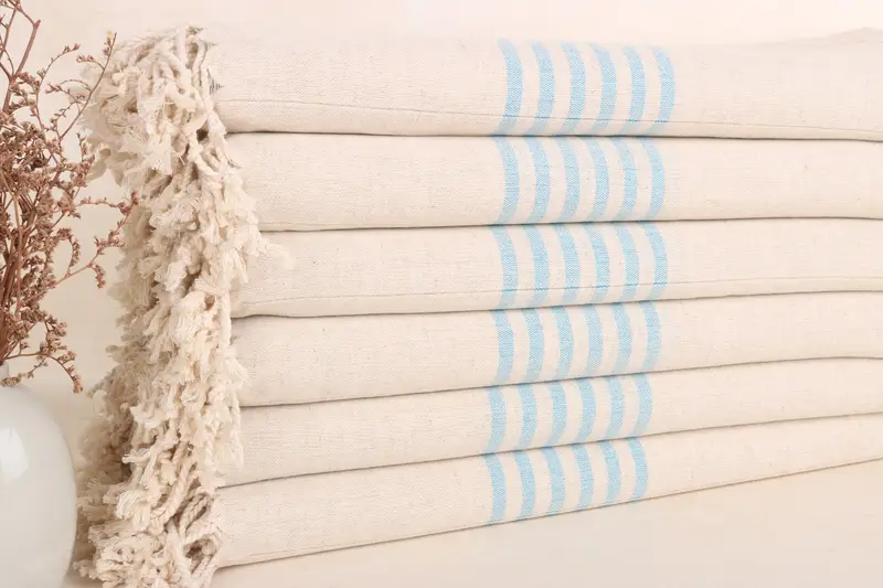 Striped Towel Turquoise Linen with Beige, 36x67 Inches