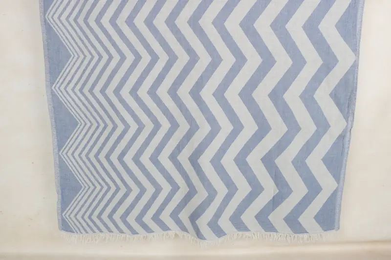 Beach Towel Monogram Denim Blue Zigzag 40x71 Inches Organic Cotton