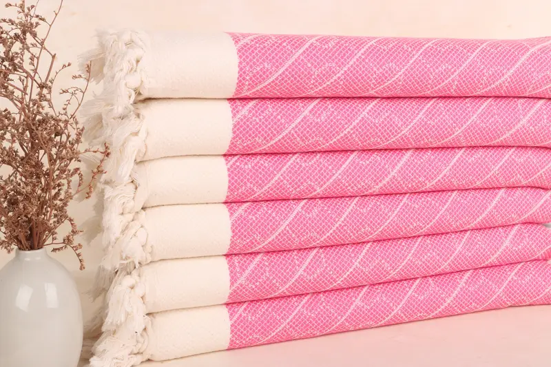 Small Bath Towel Pink Cotton Tea Towel, Geometric Design, 18x36 Inches