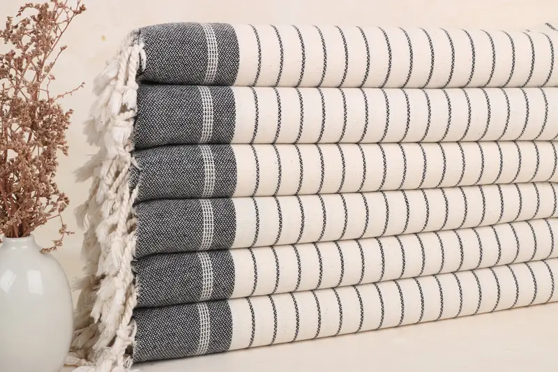 Turkish Hand Towel Organic Cotton Cream Striped, 22x40 Inches