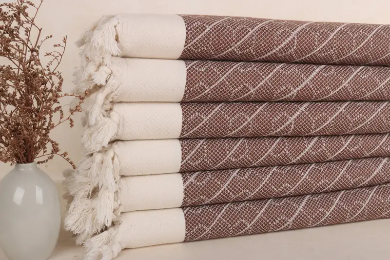 Geometric Dish Towel Brown Cotton, 18x36 Inches, Organic Turkish Cotton