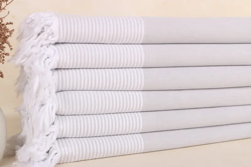 Striped Towel Organic Cotton, Light Gray and Beige, 36x79 Inches