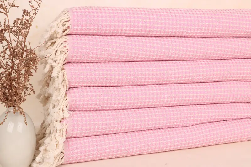 Handmade Pink Cotton Tea Towel, Turkish Hand Towel, 22x44 Inches
