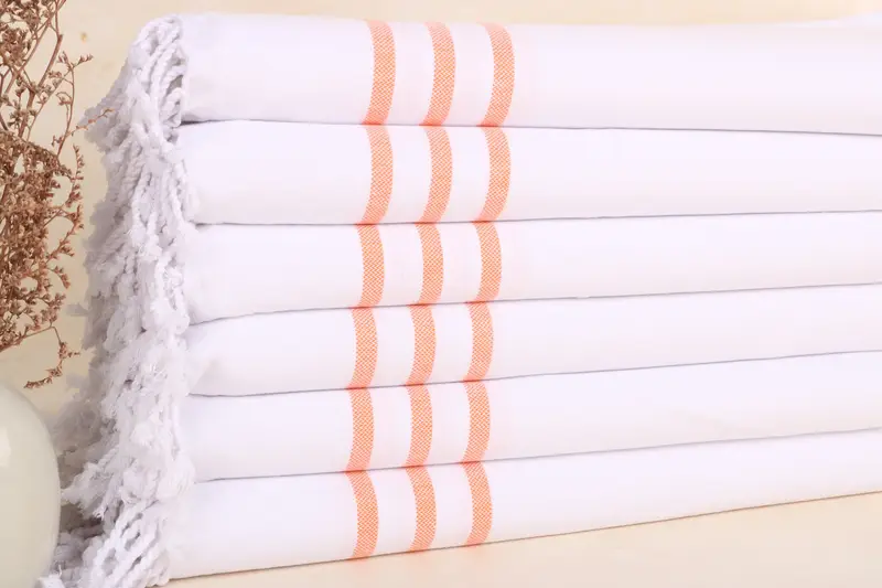 Monogrammed Hand Towel Orange Cotton, Striped, 24x40 Inches