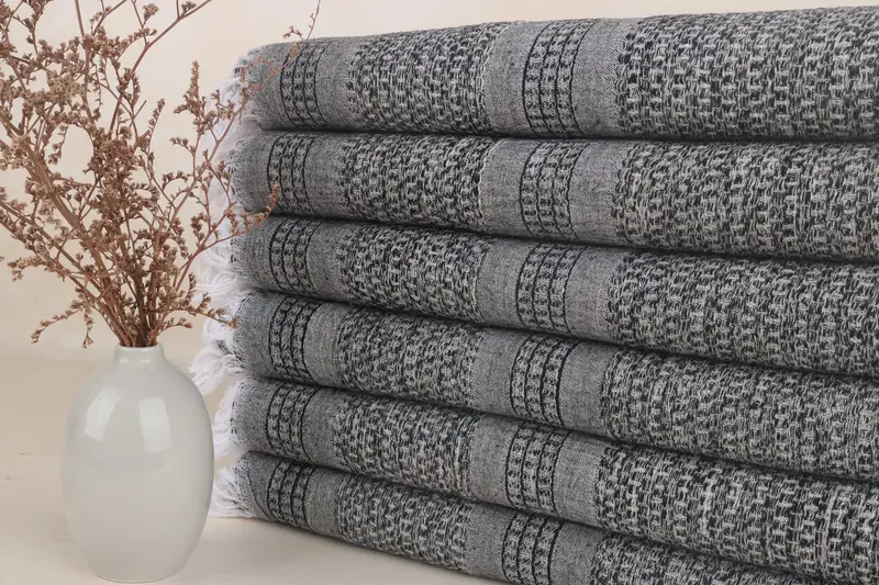Monogrammed Beach Towel Turkish Cotton Black Stripes, 36x71 Inches