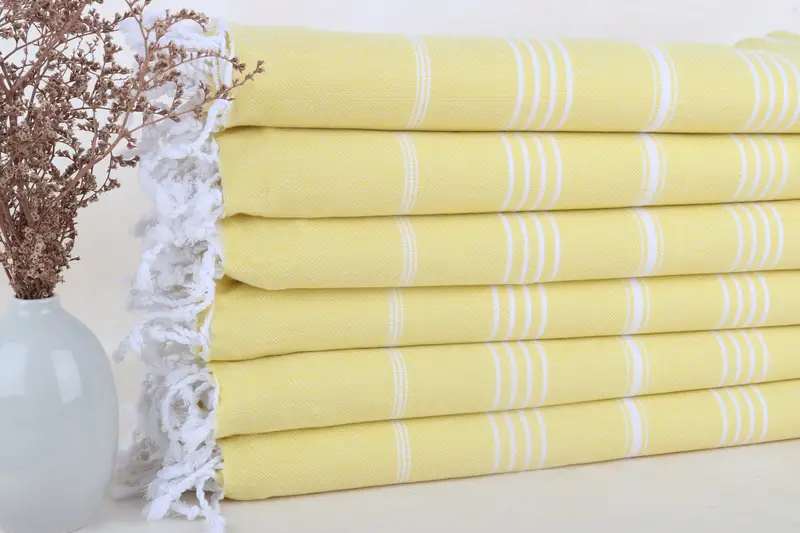 Personalized Lemon Yellow Striped Beach Towel, Beige, Organic Turkish Cotton, 40x71 Inches