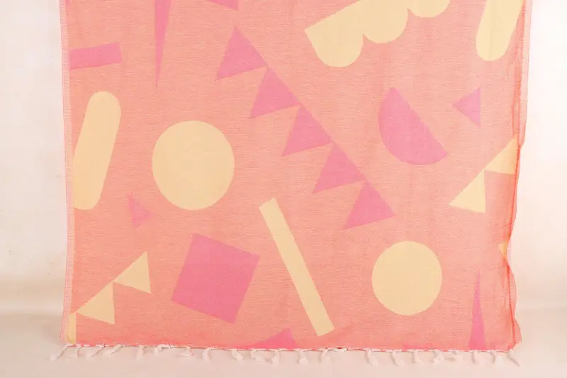 Turkish Towel Pink-Yellow Geometric Bath Towel, Beige, 40x71 Inches