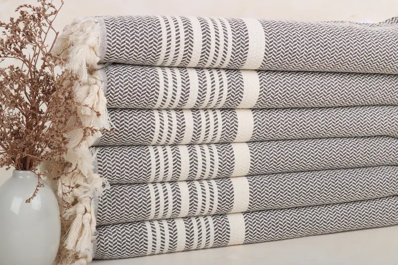 Turkish Hand Towel Brown Striped, 18x40 Inches, Organic Turkish Cotton