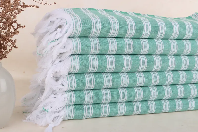 Personalized Green Striped Turkish Cotton Beach Towel, 40x71 Inches