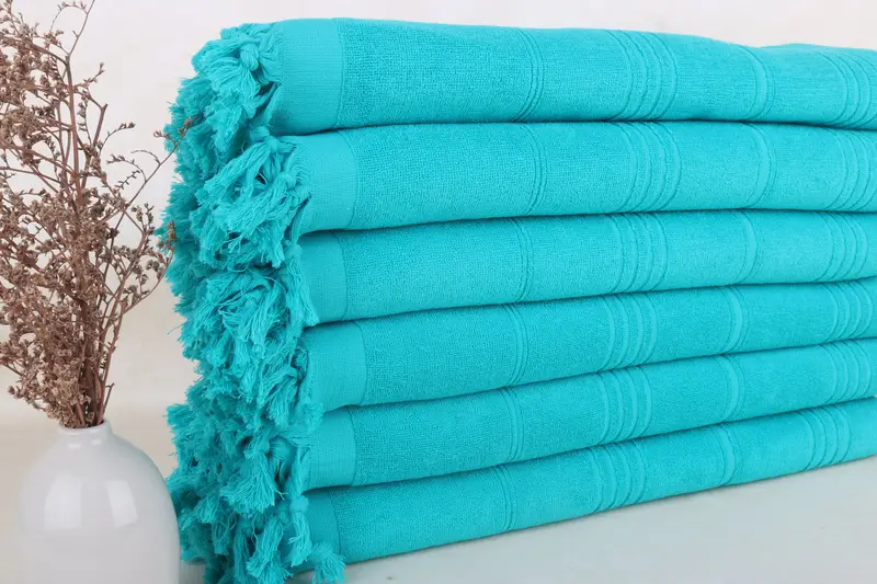 Turkish Towel Embroidered Beach Towel Benetton Green Striped Terry, 36x71 Inches